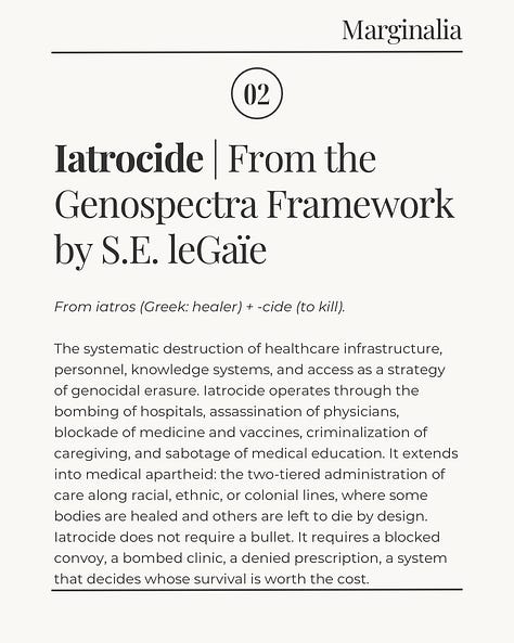 So I produce intellectual labor at the highest level. I develop frameworks that scholars will use; limoscide, paisicide, iatrocide, the Genospectra Framework. I analyze genocide. I document media distortion. I investigate structures of power. I write with precision and rigor and moral clarity. I do this while managing a household. While managing a health crisis. While managing a legal fight. While managing the constant low-level trauma of not knowing where we will be sleeping the next day.