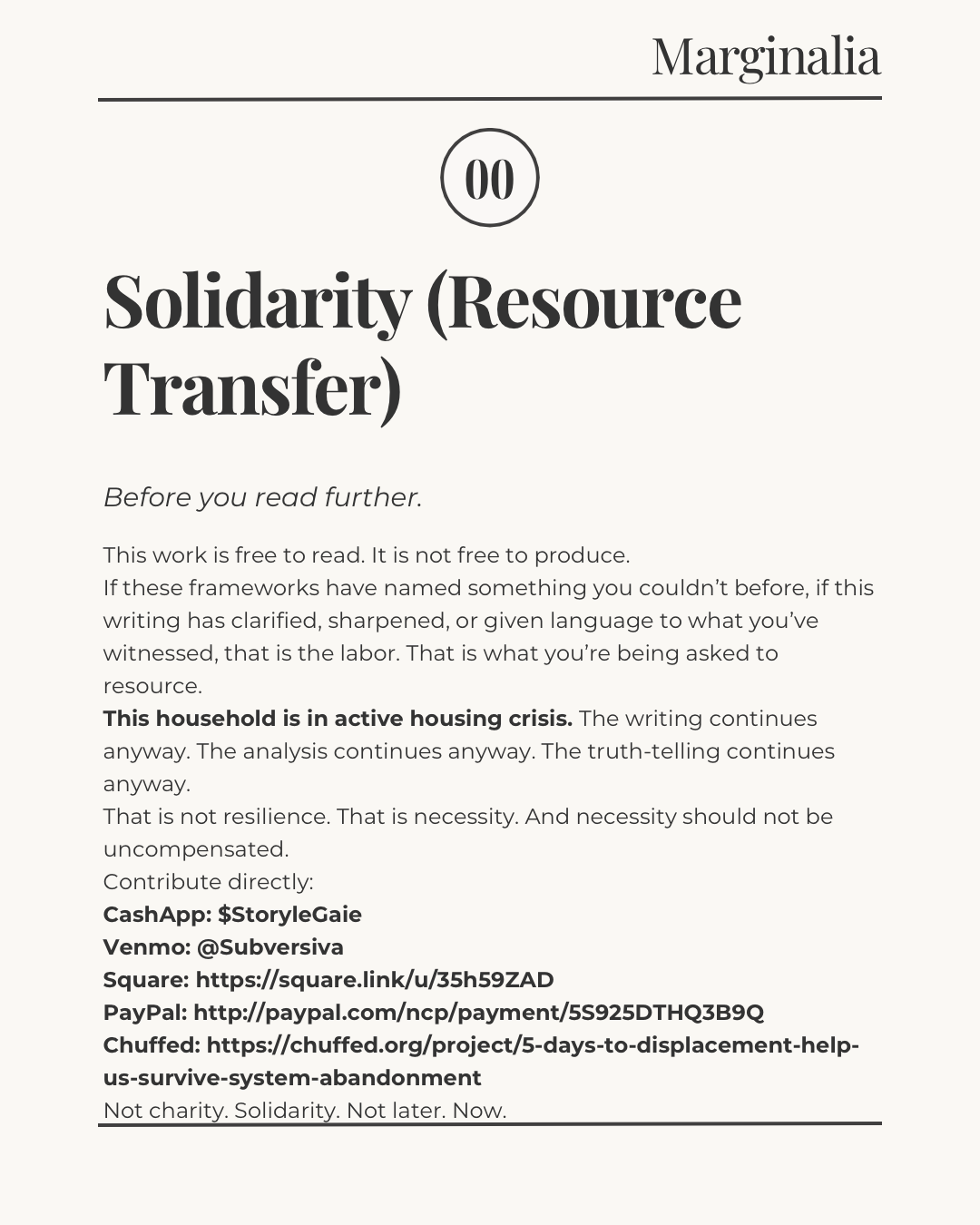 Solidarity is not charity. Solidarity is investment in a world where this doesn’t happen. If this analysis has clarified the systems you live within, recognize that this clarity has a cost. I am providing the map; I am asking you to fuel the journey.